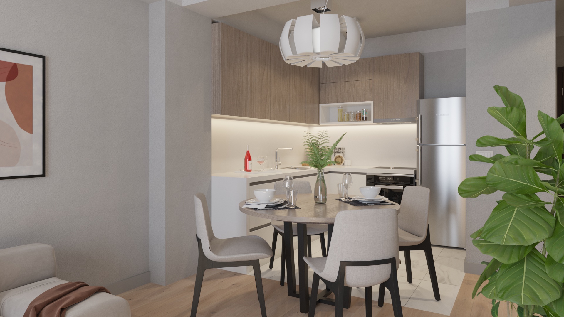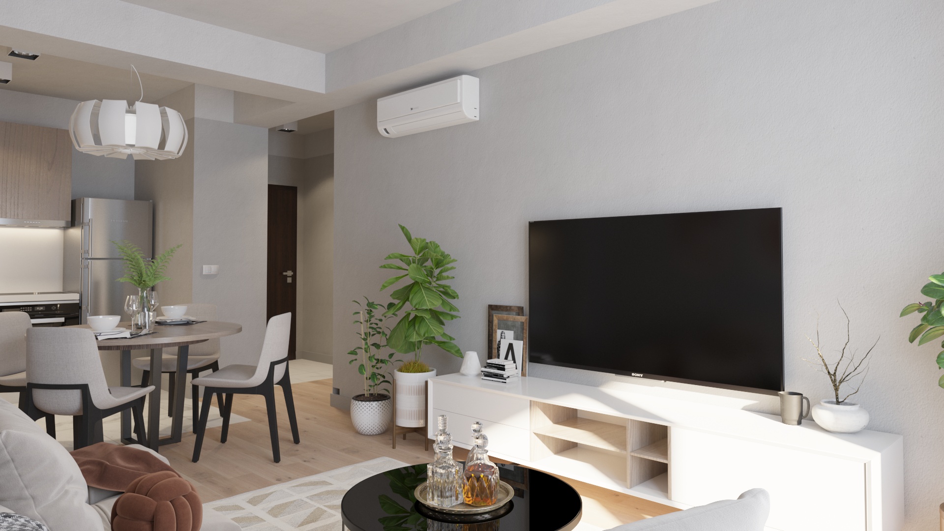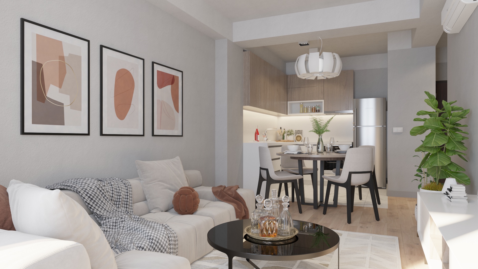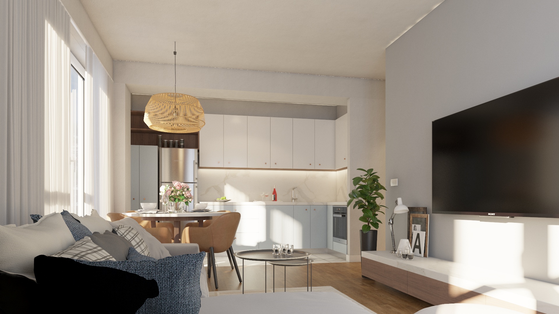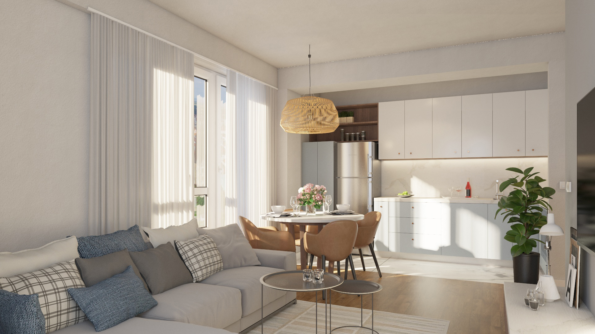 Дневна зона: Пространа дневна со трпезарија и кујна² – простор каде ќе се создаваат најубавите спомени.